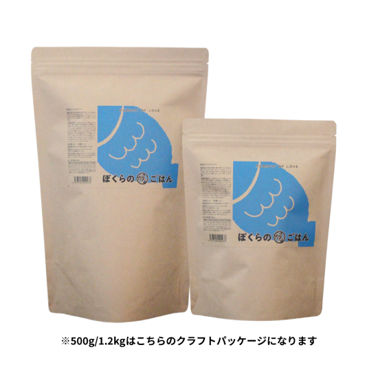 鰯、宗田節、鰹節、鯖節、焼きアゴ(全て国内水揚げ)、米、おから、玄米、じゃがいも、かぼちゃ、キャベツ、小松菜、人参、大豆、黒豆、米ぬか、すだき糖、えごま、卵殻カルシウム、ビール酵母、干ししいたけ、昆布、りんご皮、酒粕
